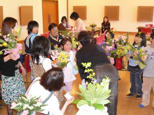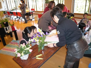 子ども達の普段見られないほどの真剣な表情や、思ったとおりのアレンジメントができたときのはちきれんばかりの表情がそのことを物語っていました。参加されたお母さん方も一緒になって楽しんでおられたようでした。