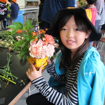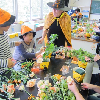 女川町の様子は、だいぶ片付いてきてはいますが、まだまだ、復興にはほどとうそうです。 でも子供達は元気!!今回はハロウインをテーマに楽しくアレンジ作り♪♪ドリーン先生は魔女の衣装で、先生達と私達メンバーもハロウインの帽子をかぶりーーそして子供達に帽子のプレゼント! みんなの笑顔が伝わりますか!!