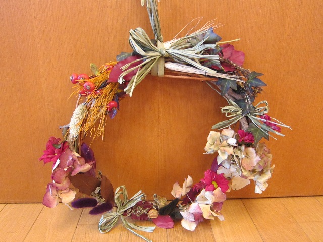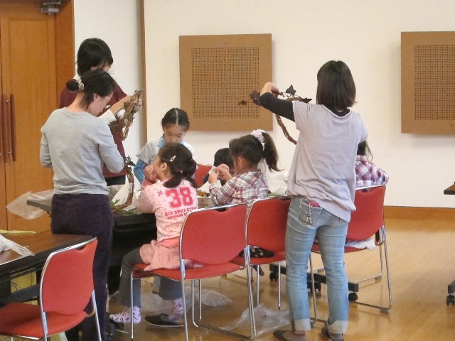 オンたまと共同企画”ママと一緒に秋のリースをつくろう” 23組ほどのママと子供達 リースづくりに挑戦! 親子で大奮闘 ♪
